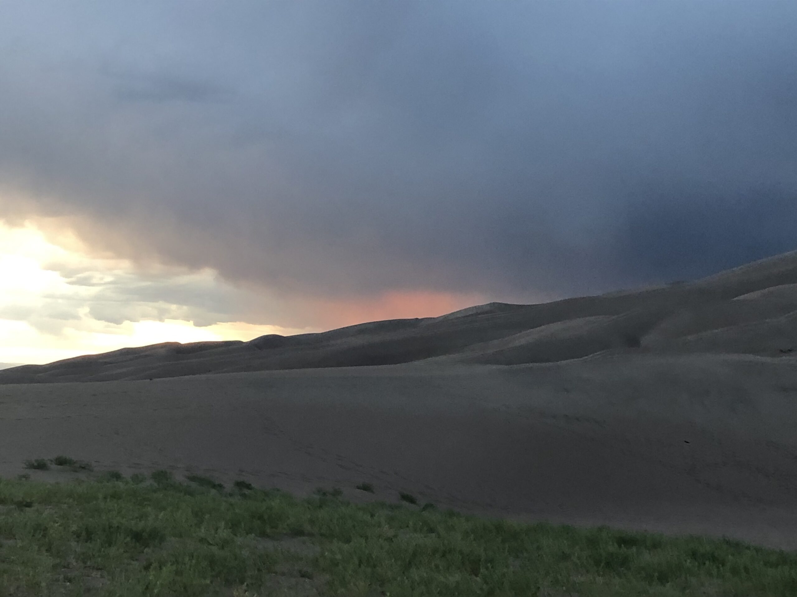 After a bit of initial confusion we worked out that a number of pitches were available. So we were able to nestle Martha into one. Realistically we knew that climbing to the top of the dunes at dusk was probably not sensible.