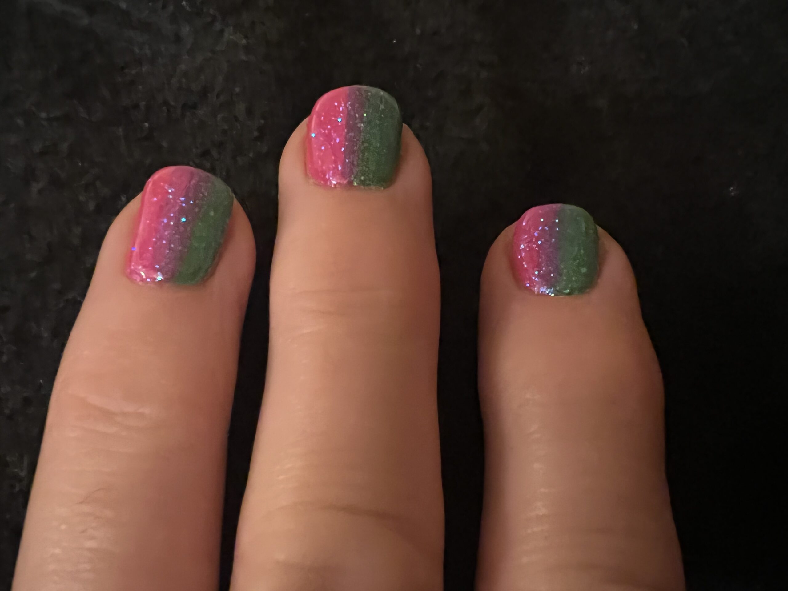 The link below is a few seconds showing close up of nails with pink & green polish.