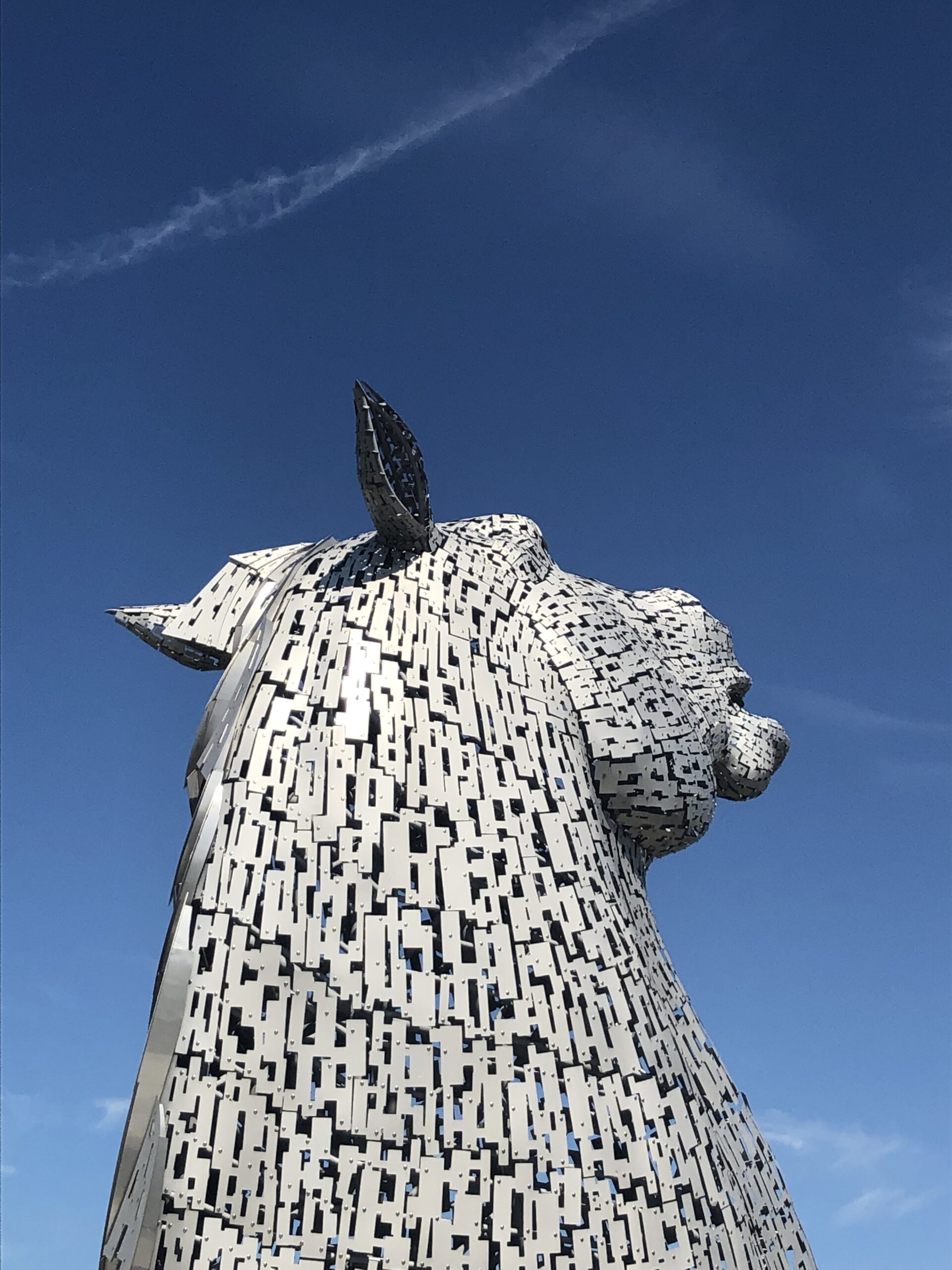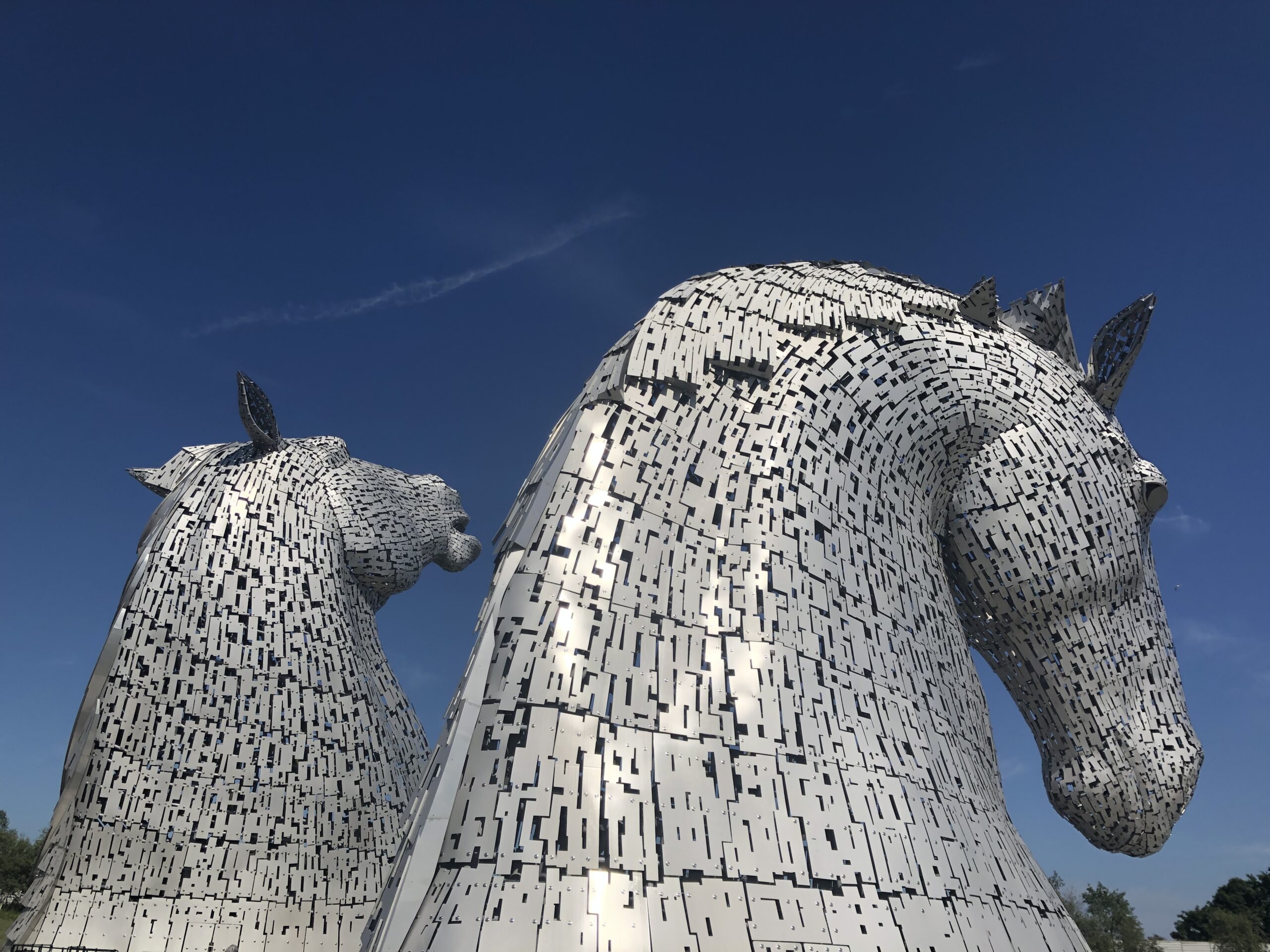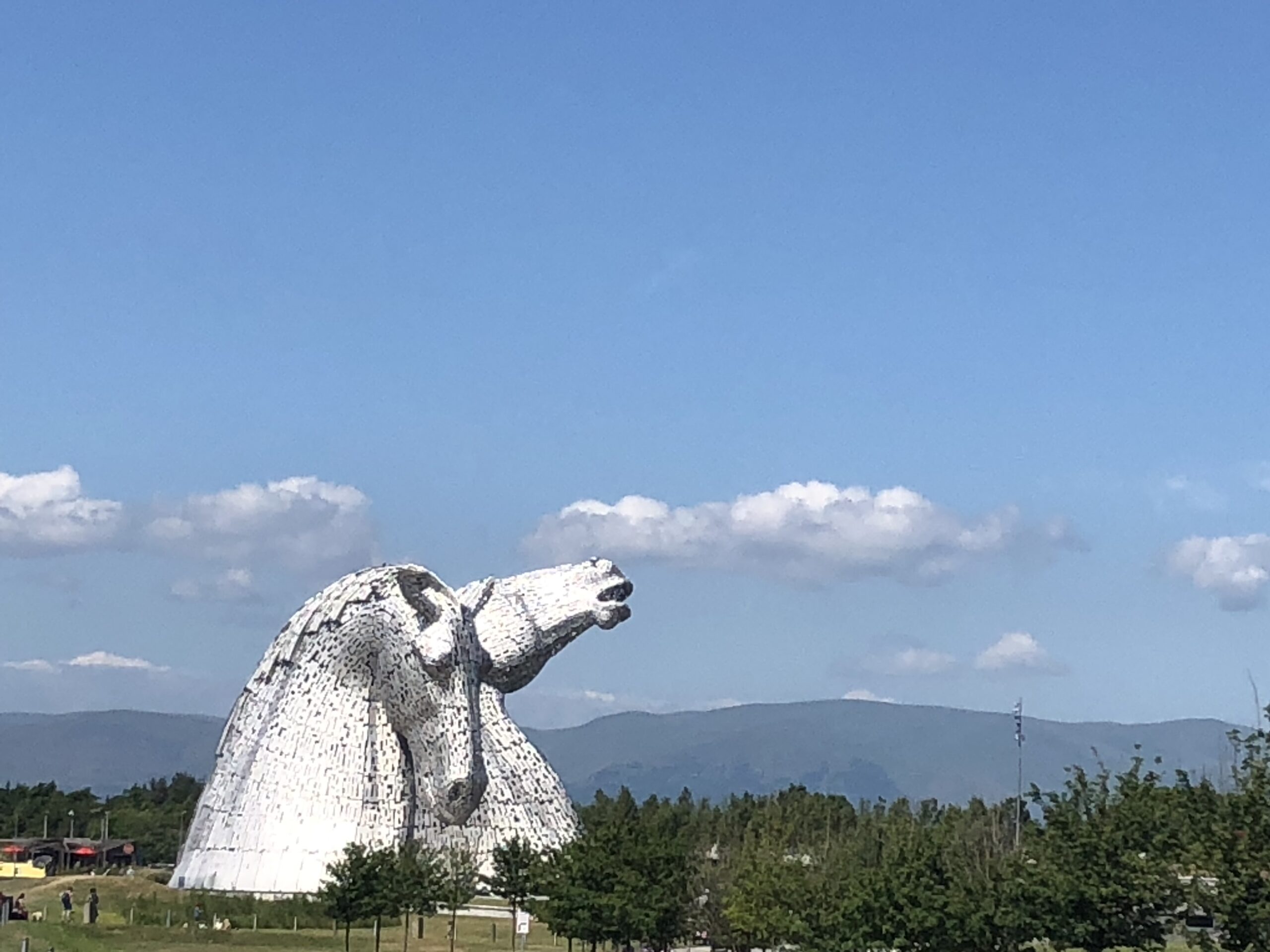 Travelling by bike on a hot day at the start of Scottish school holidays has its advantages because the carpark was full but we were allowed to squeeze in. A welcome break to admire the awesome Kelpies that involved a quick photo shoot & an ice cream which enabled us to be back on our ‘metal horse’ & heading for home.