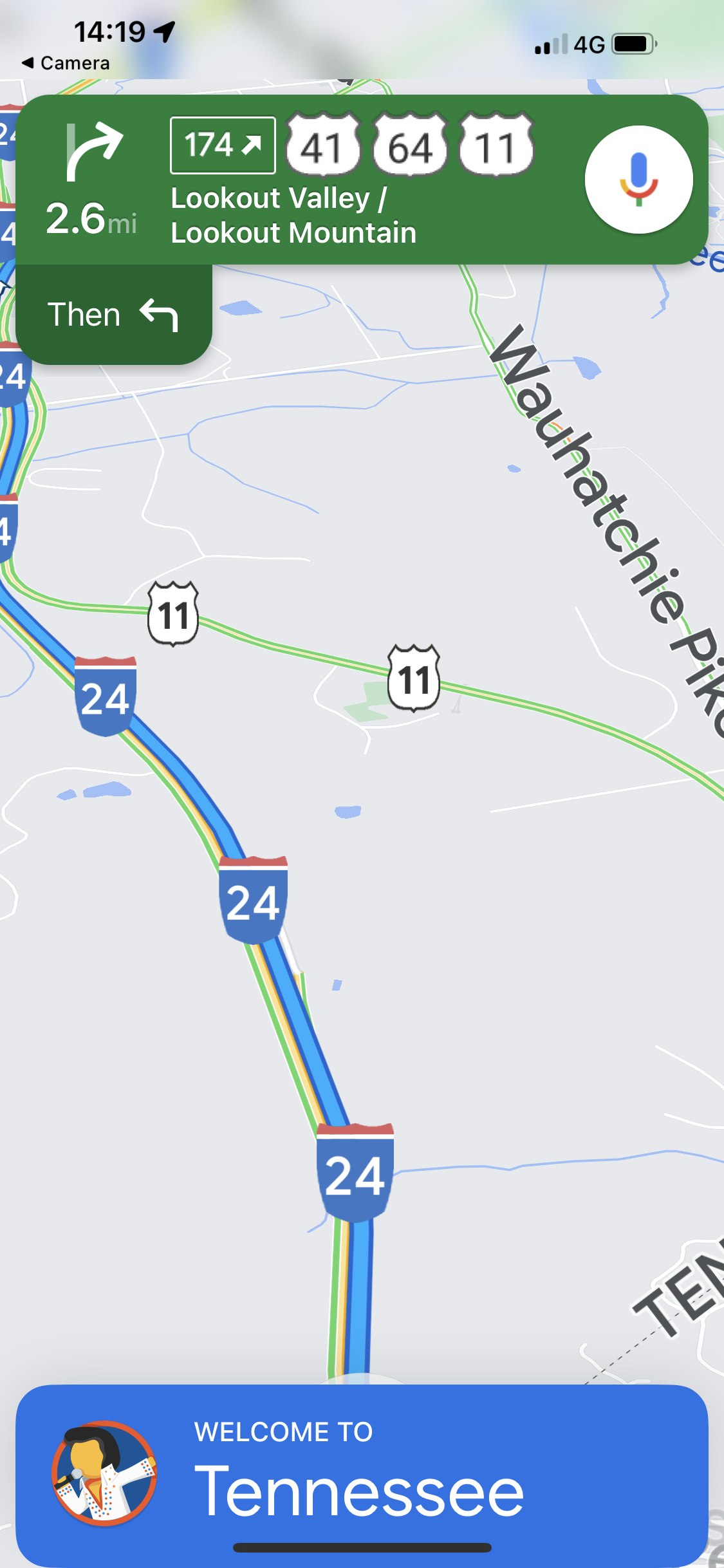 The dreary grey wet weather complemented our mood after such interrupted sleep. We didn’t have time to stop in Chattanooga itself or have a go as planned on the scenic railway . Seemed little point as it was so claggy we wouldn’t have been able to enjoy the view.